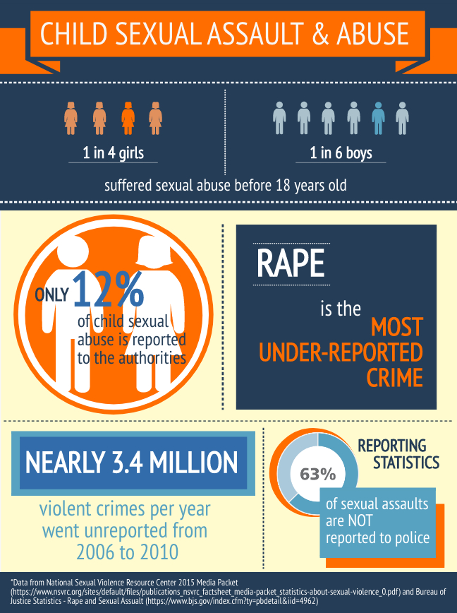 What even shattered my heart into pieces is the fact that, on the dire contrast to its prevalence, rape is the most under-reported crime: From 2006 to 2010, nearly 3.4 million violent crimes were unreported annually, among which 63% of sexual assaults went unreported from the police. More specifically, regarding the cases of child sexual abuse, only 12% of them were reported to the authorities. (Kimble, 2018)