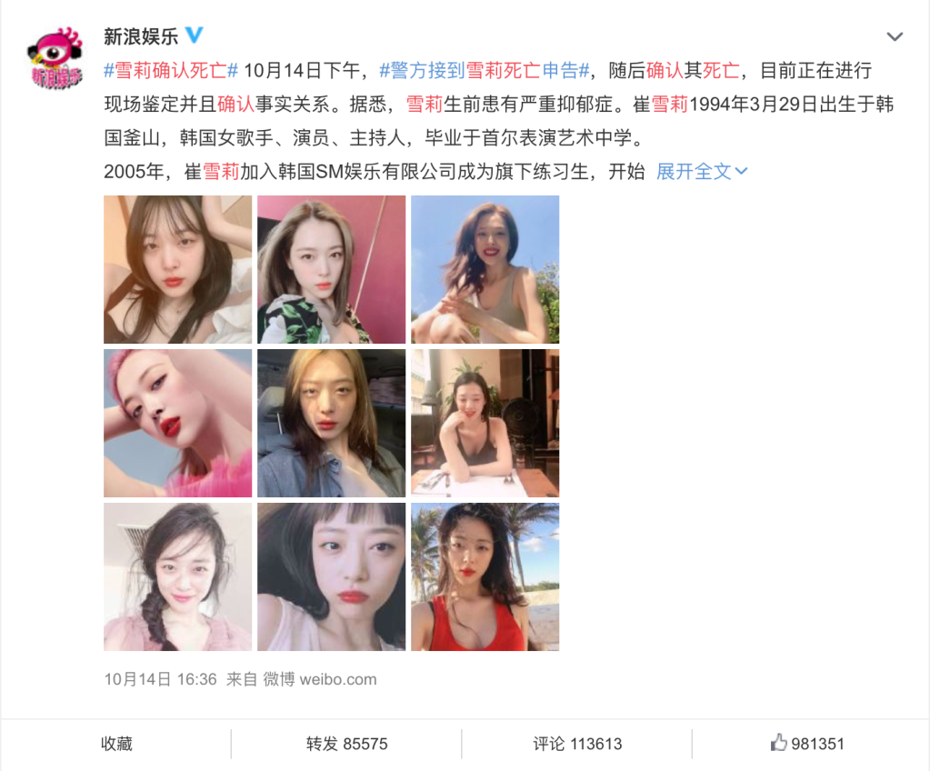 We can also discern the power of social media when I relied on it as my ‘go-to’ source of information instead of turning to more ‘official’ news outlets: after informed by my roommates about the suicide of K-pop star Sulli Choi, I immediately searched on Sina Weibo – the leading social media platform in China – to collaborate the news. Also, depending on The Daily Show, a news satire program, to access the knowledge about current events and base almost all my political engagement on the insights provided, I risked exposing myself to highly manipulated messages as the source conveys mediated information and opinions that are selected, filtered, and undeniably biased.