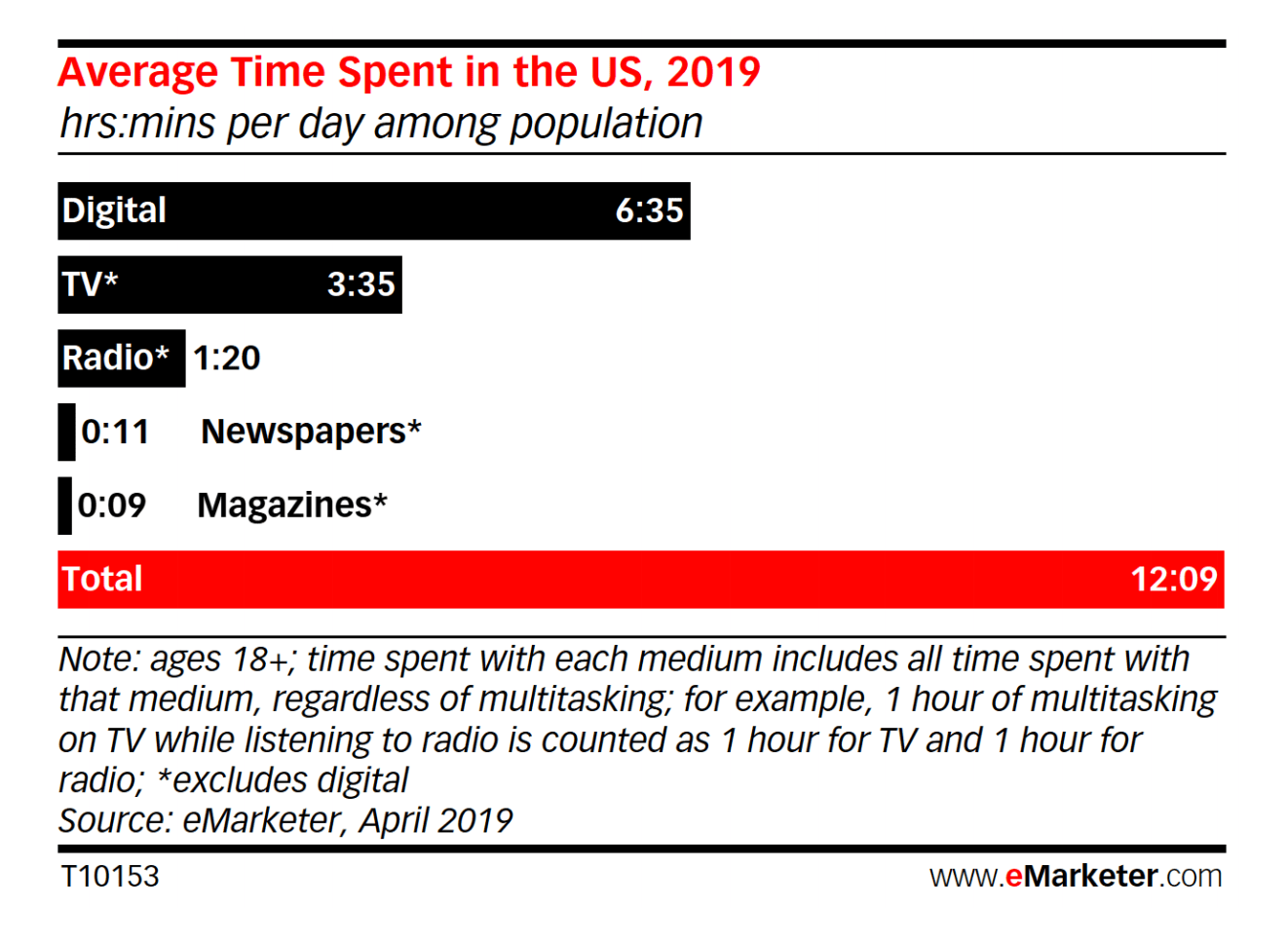 We estimate that time spent with media this year by US adults (ages 18+) will average 12 hours, 9 minutes per day. Mark Dolliver (May, 2019) In the marketing class digging into contemporary media consumption, I was shocked by the fact that the average time US adults spent with media exceeds 12 hours. Logging myContinue reading “Déconstruction: Me and Media”